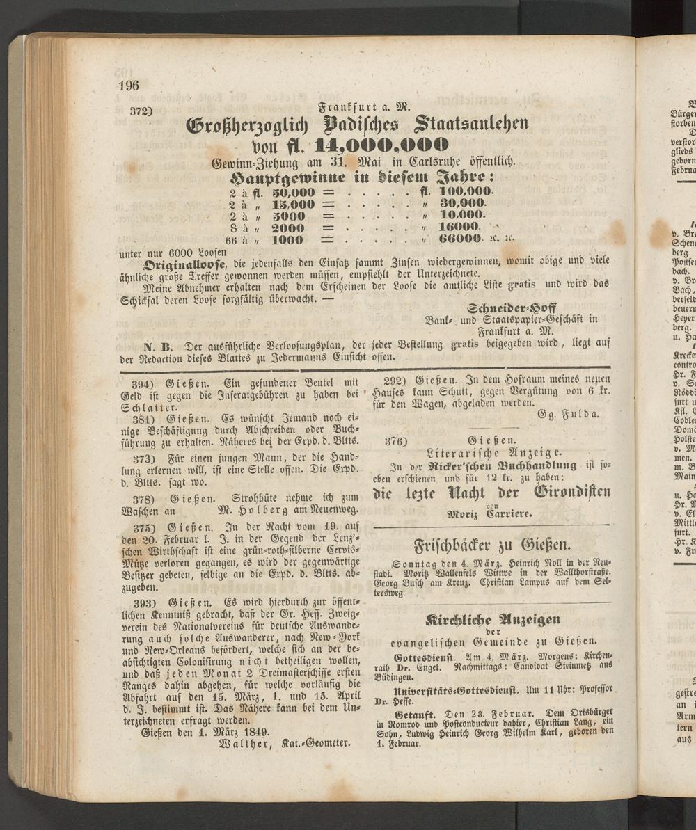 Anzeigeblatt für die Provinzialhauptstadt Gießen. 1840-1867
