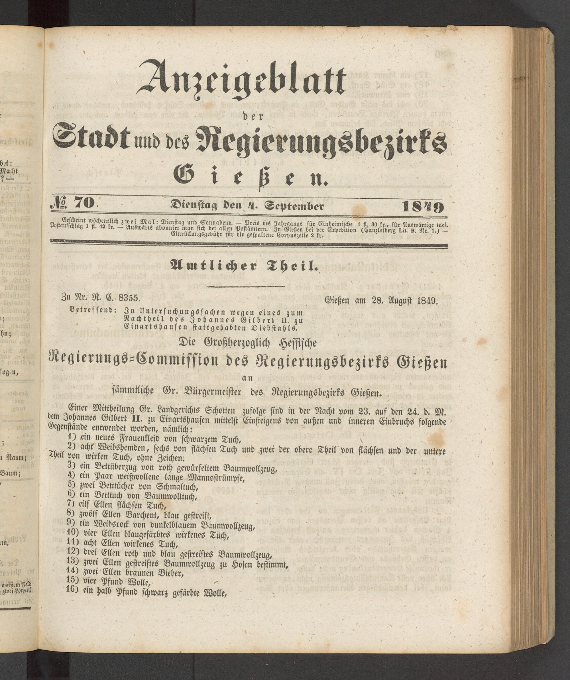 Anzeigeblatt für die Provinzialhauptstadt Gießen. 1840-1867