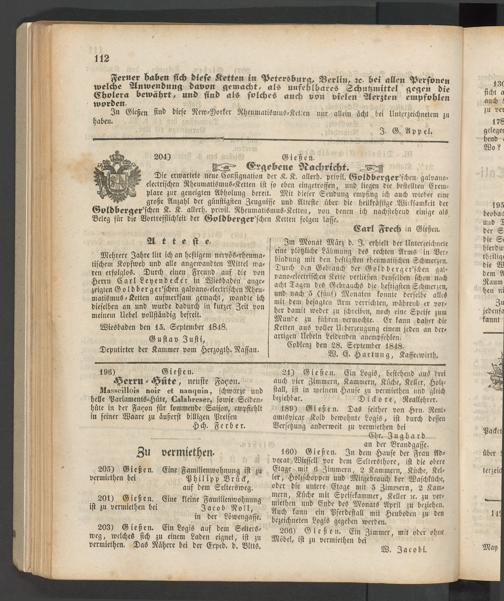 Anzeigeblatt für die Provinzialhauptstadt Gießen. 1840-1867