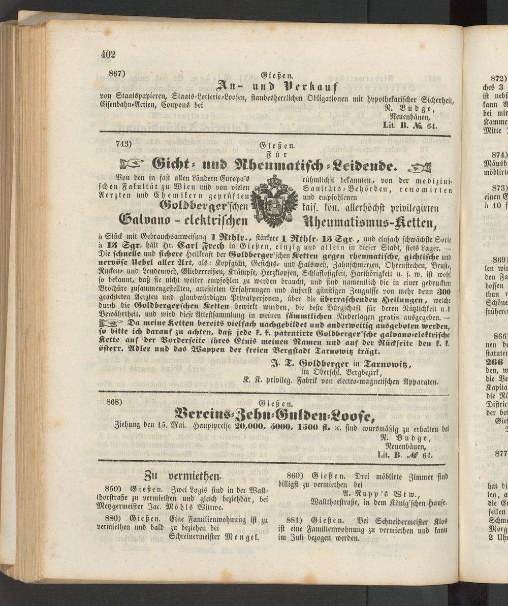 Anzeigeblatt für die Provinzialhauptstadt Gießen. 1840-1867
