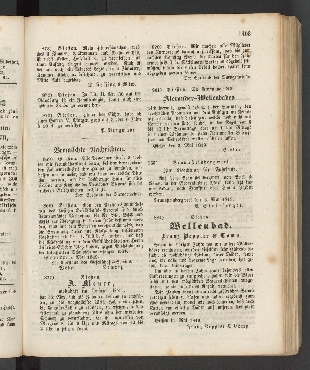 Anzeigeblatt für die Provinzialhauptstadt Gießen. 1840-1867