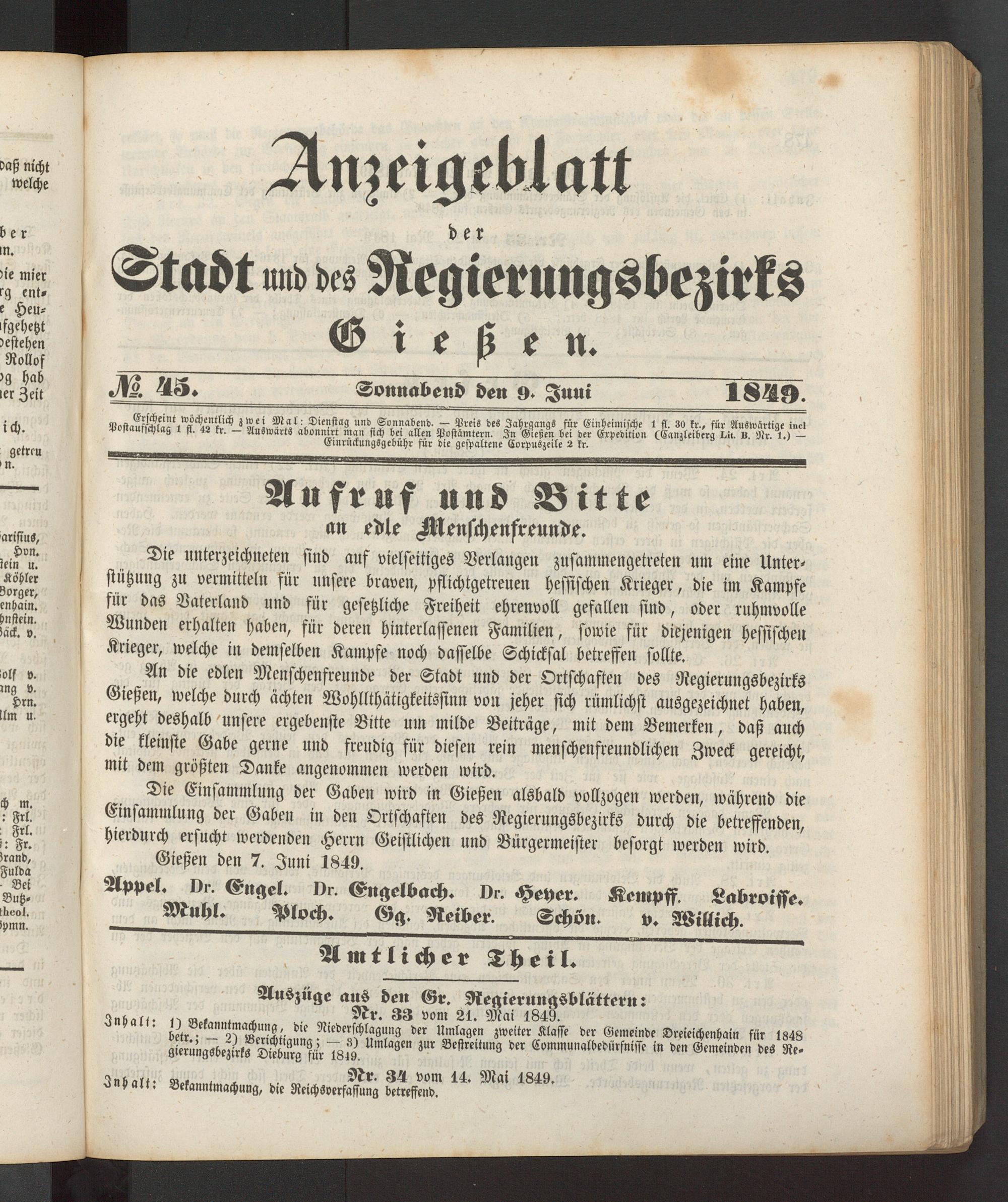 Anzeigeblatt für die Provinzialhauptstadt Gießen. 1840-1867