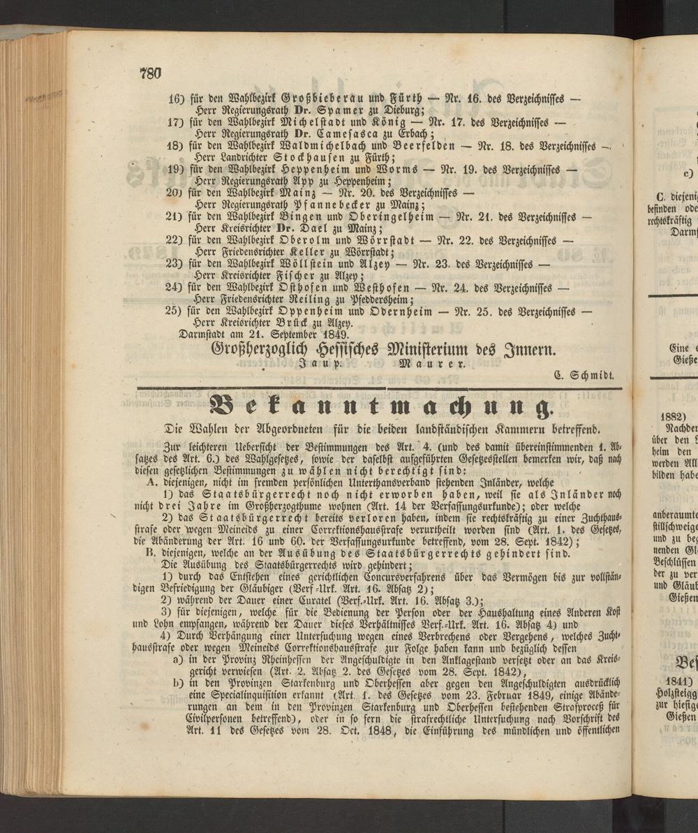 Anzeigeblatt für die Provinzialhauptstadt Gießen. 1840-1867