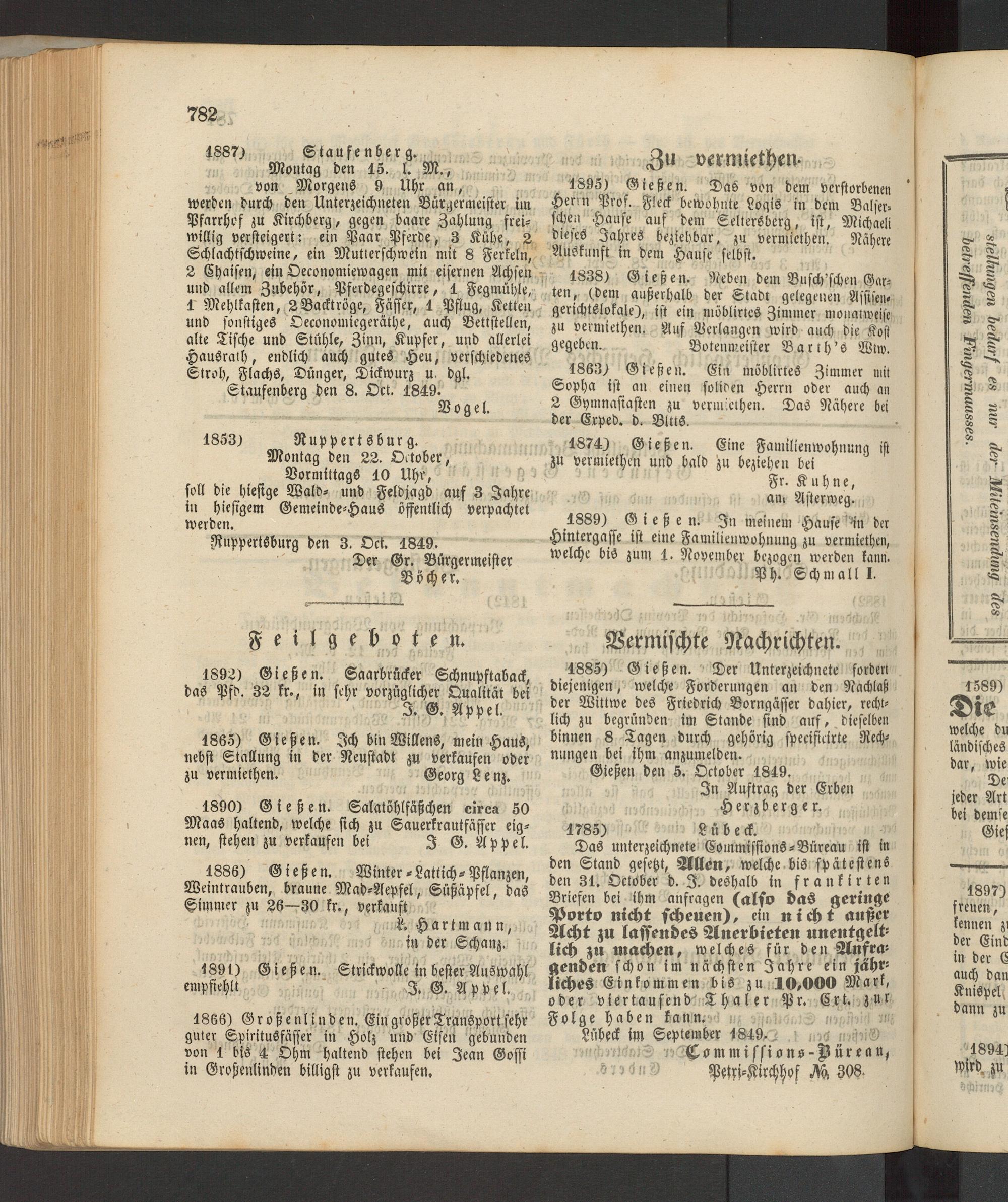 Anzeigeblatt für die Provinzialhauptstadt Gießen. 1840-1867