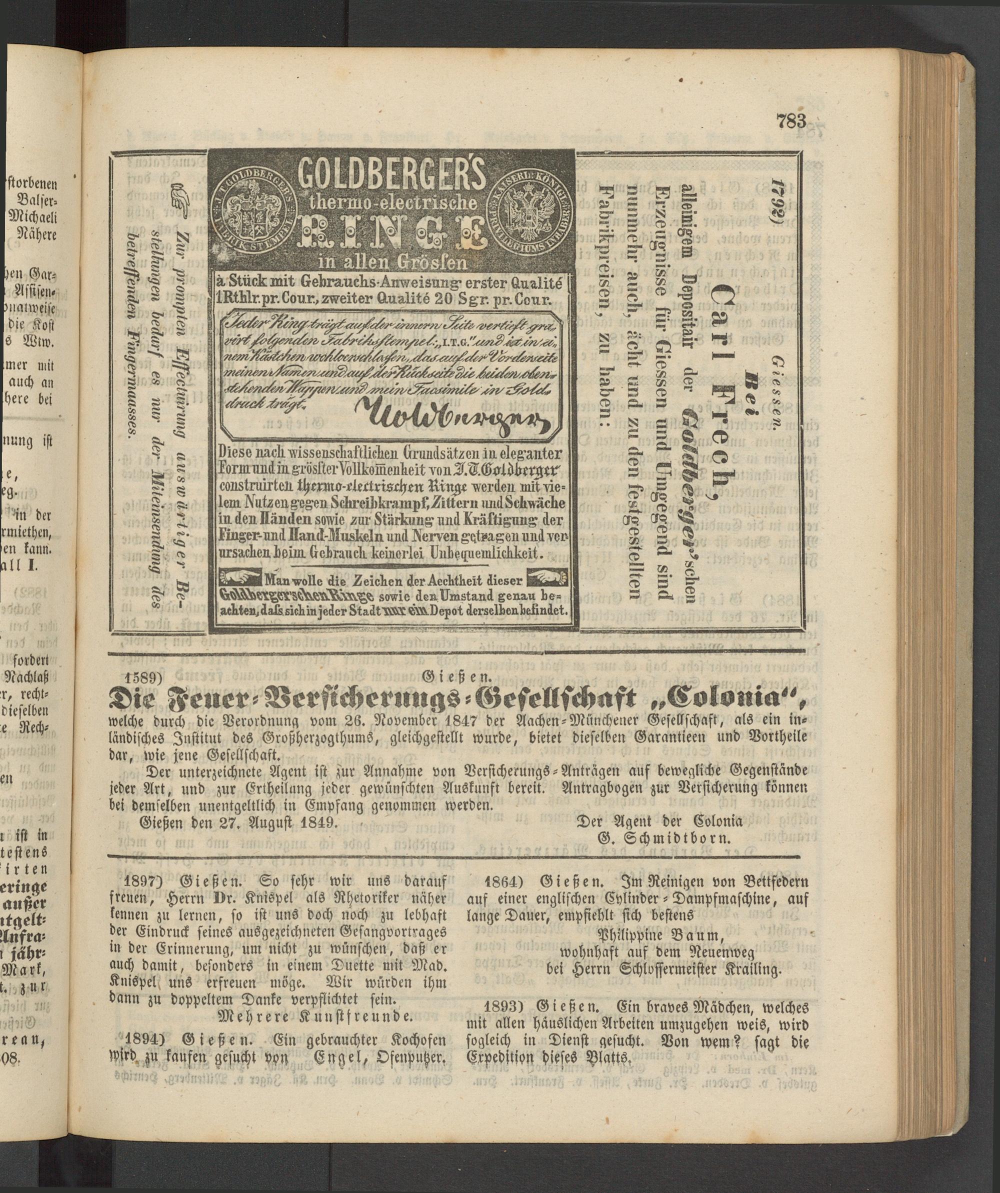 Anzeigeblatt für die Provinzialhauptstadt Gießen. 1840-1867