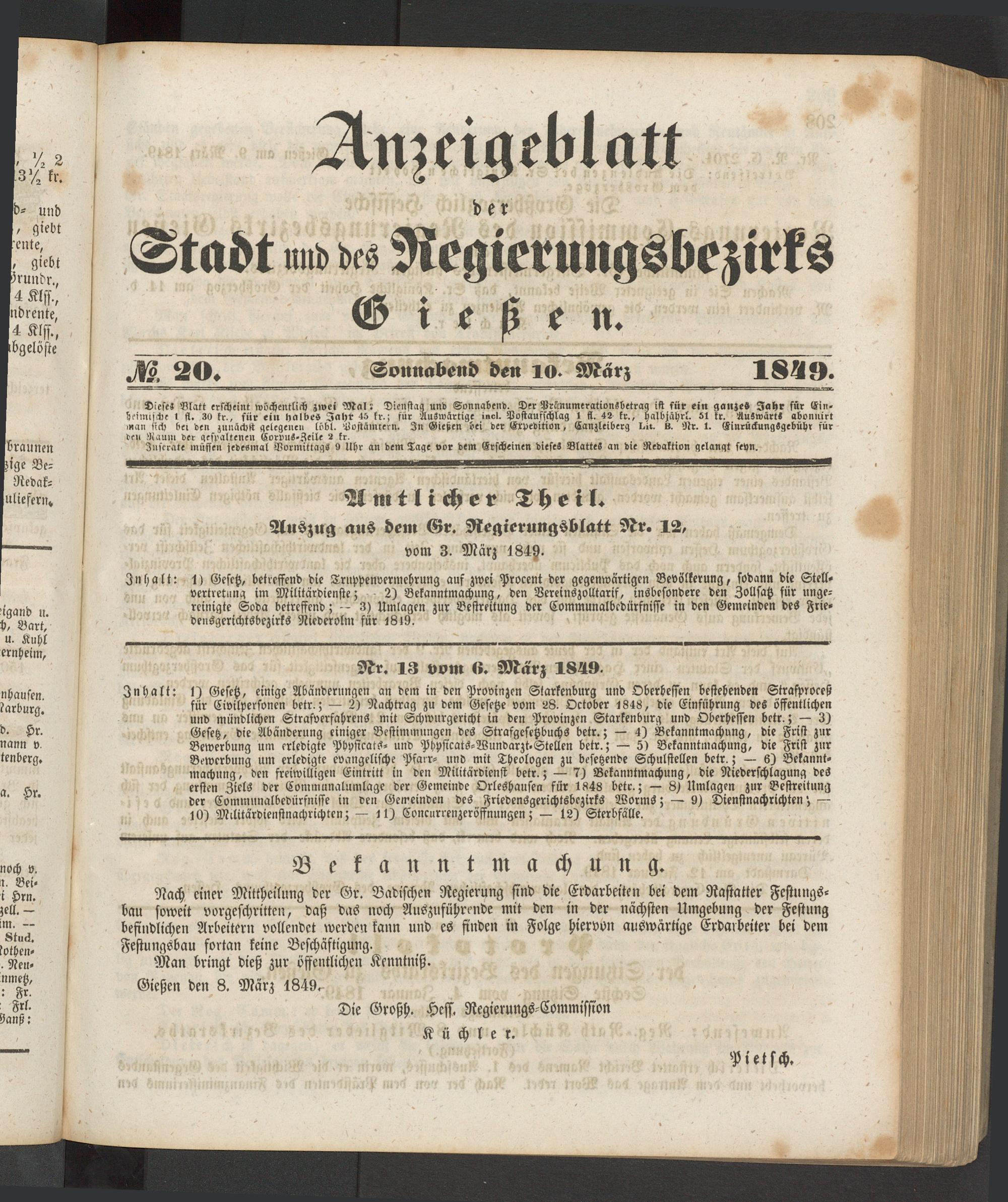 Anzeigeblatt für die Provinzialhauptstadt Gießen. 1840-1867