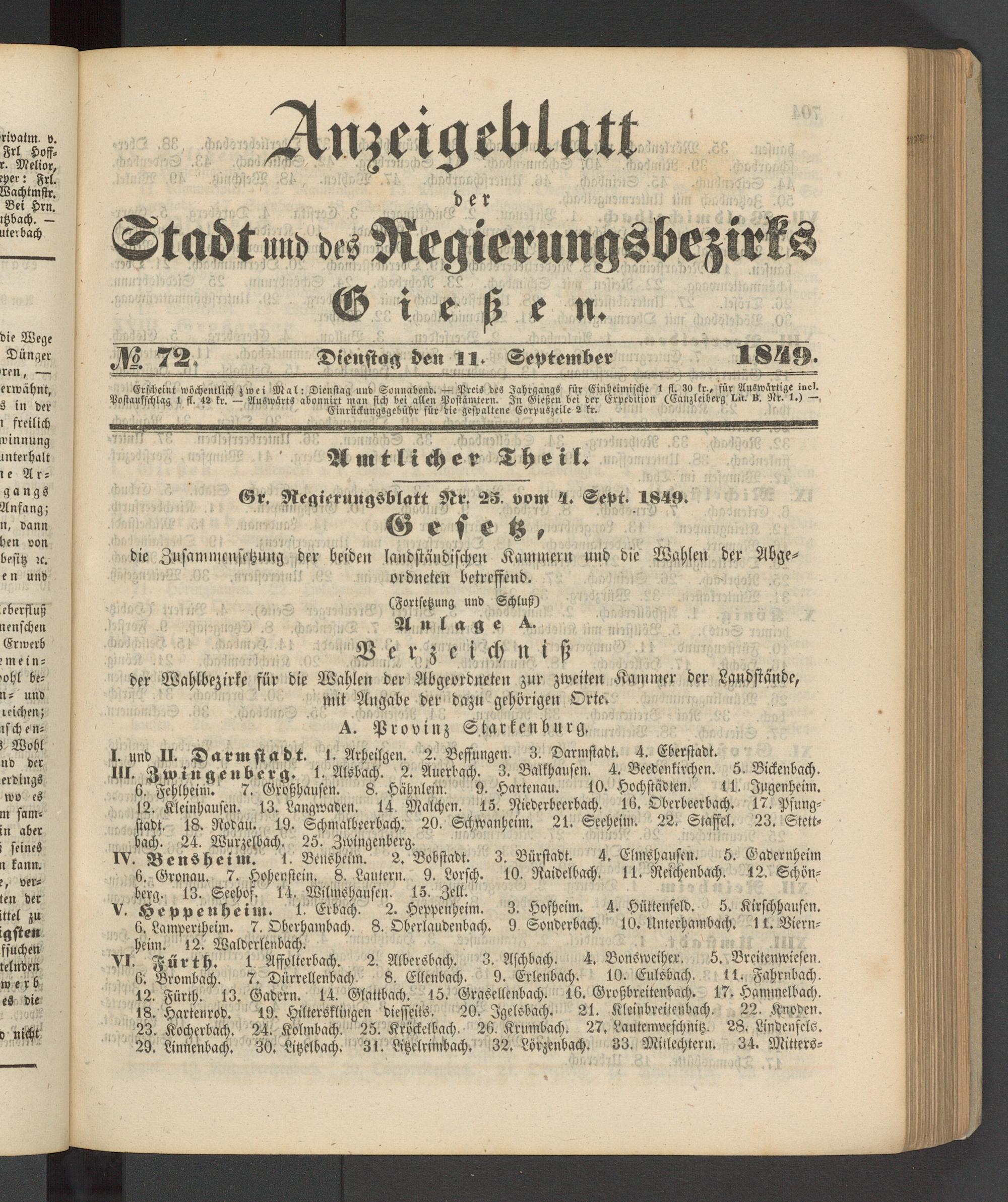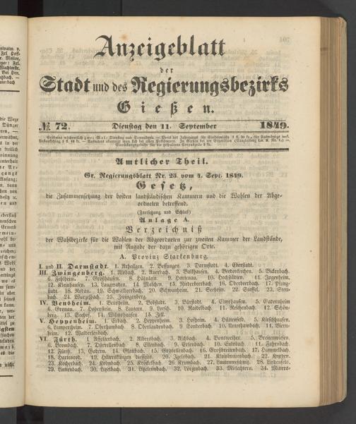 Anzeigeblatt für die Provinzialhauptstadt Gießen. 1840-1867