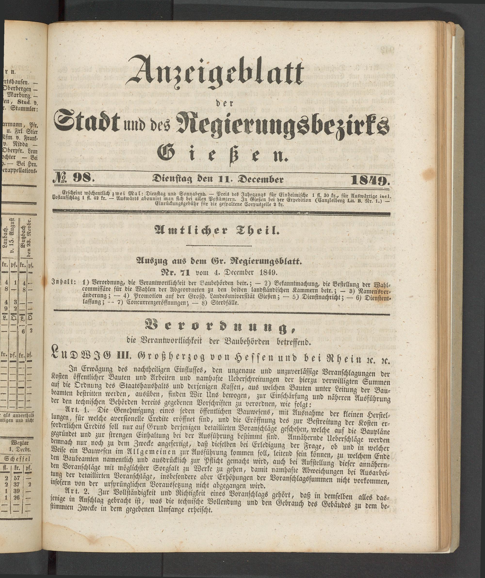 Anzeigeblatt für die Provinzialhauptstadt Gießen. 1840-1867