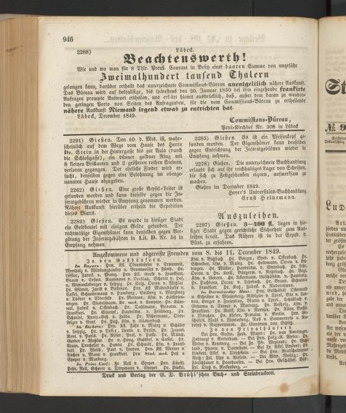 Anzeigeblatt für die Provinzialhauptstadt Gießen. 1840-1867