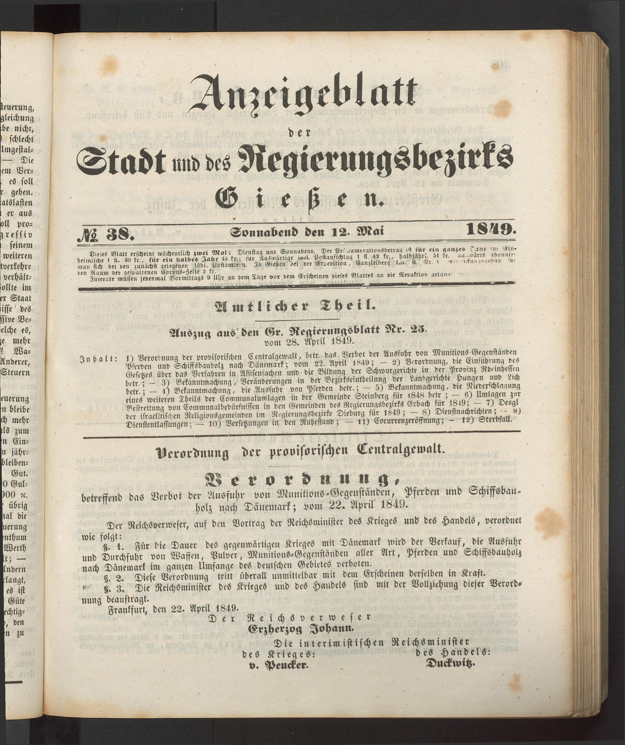 Anzeigeblatt für die Provinzialhauptstadt Gießen. 1840-1867