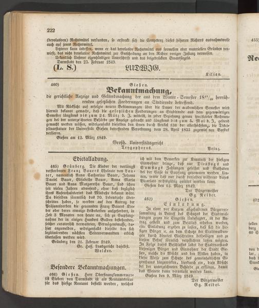 Anzeigeblatt für die Provinzialhauptstadt Gießen. 1840-1867