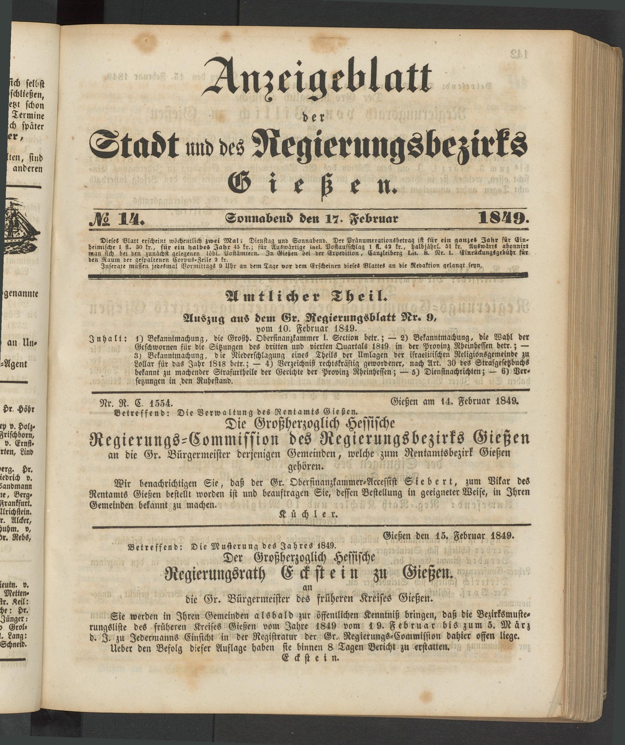 Anzeigeblatt für die Provinzialhauptstadt Gießen. 1840-1867