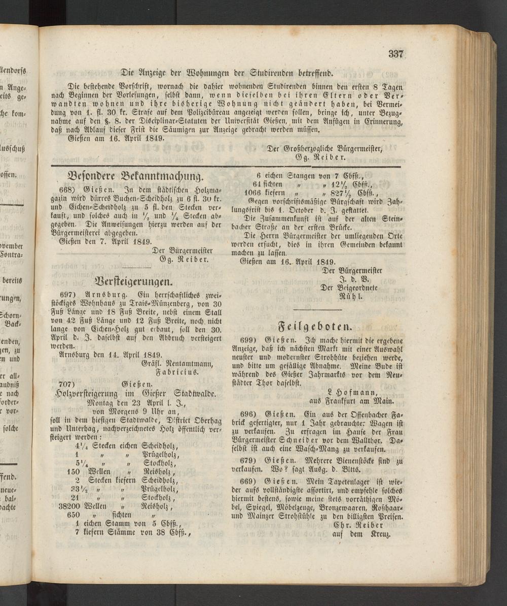 Anzeigeblatt für die Provinzialhauptstadt Gießen. 1840-1867