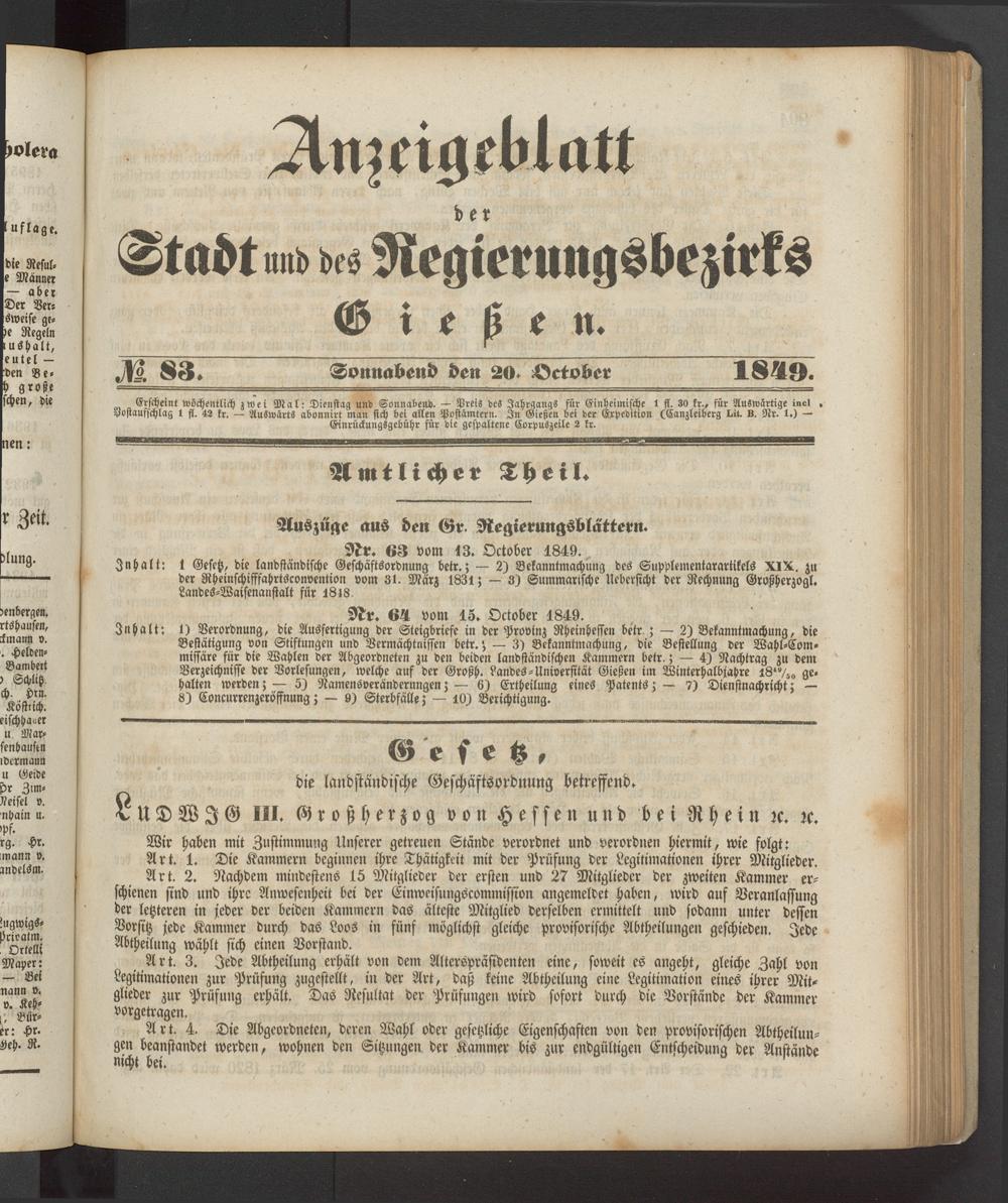 Anzeigeblatt für die Provinzialhauptstadt Gießen. 1840-1867