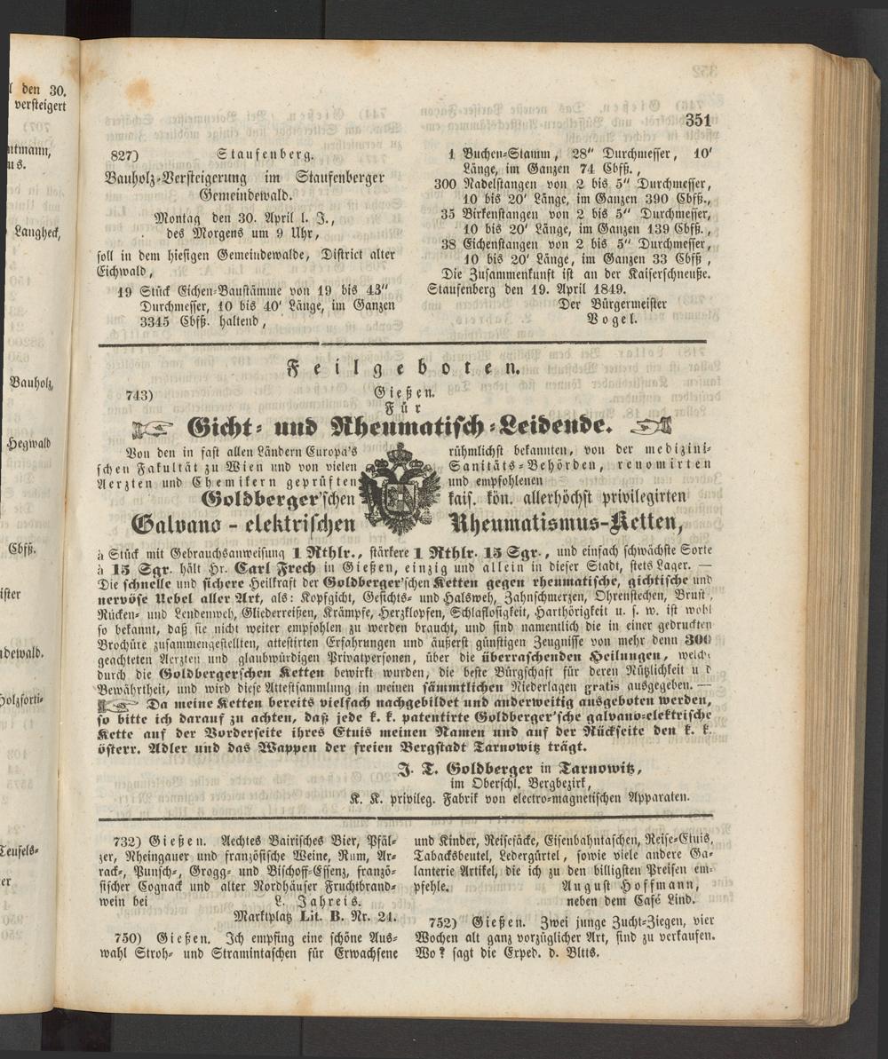 Anzeigeblatt für die Provinzialhauptstadt Gießen. 1840-1867
