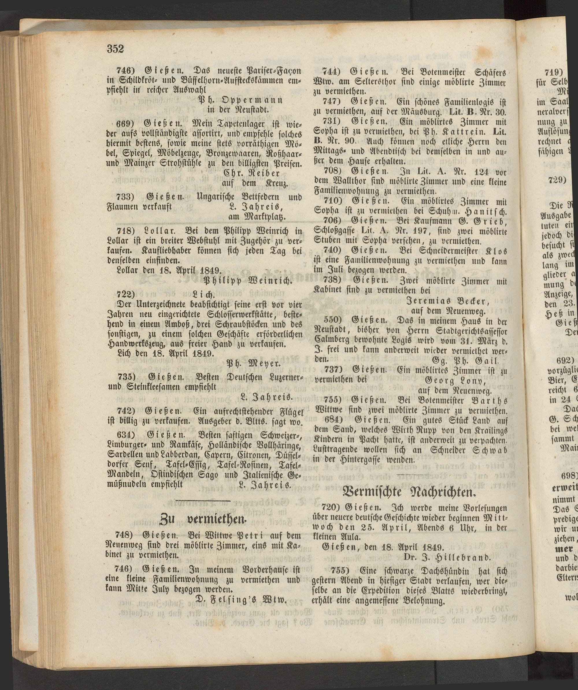 Anzeigeblatt für die Provinzialhauptstadt Gießen. 1840-1867