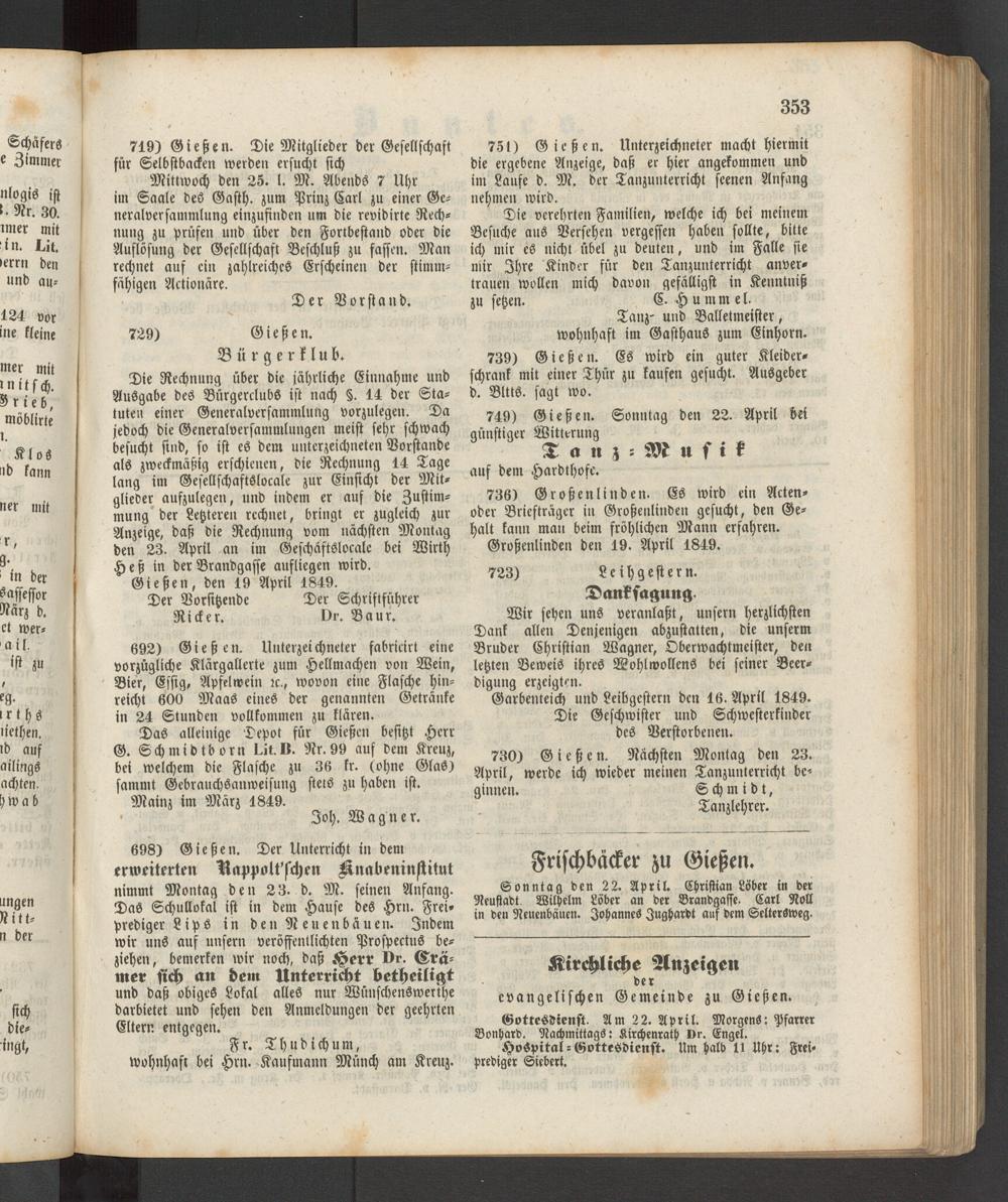 Anzeigeblatt für die Provinzialhauptstadt Gießen. 1840-1867