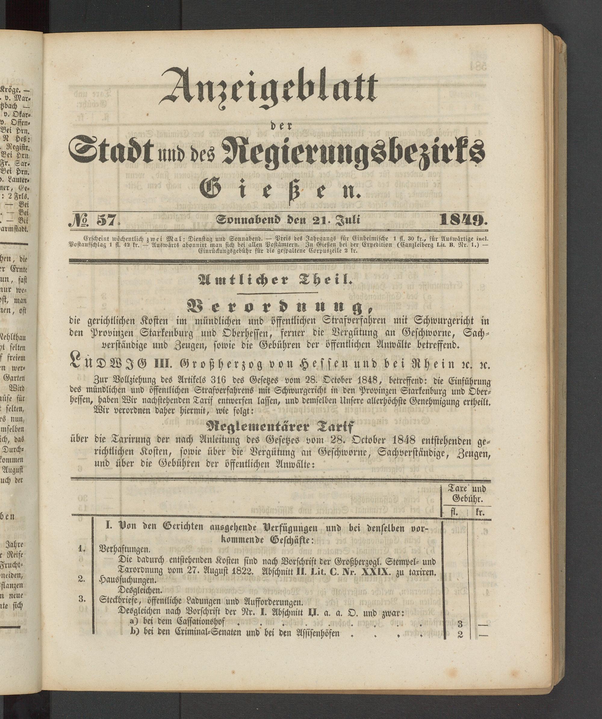 Anzeigeblatt für die Provinzialhauptstadt Gießen. 1840-1867