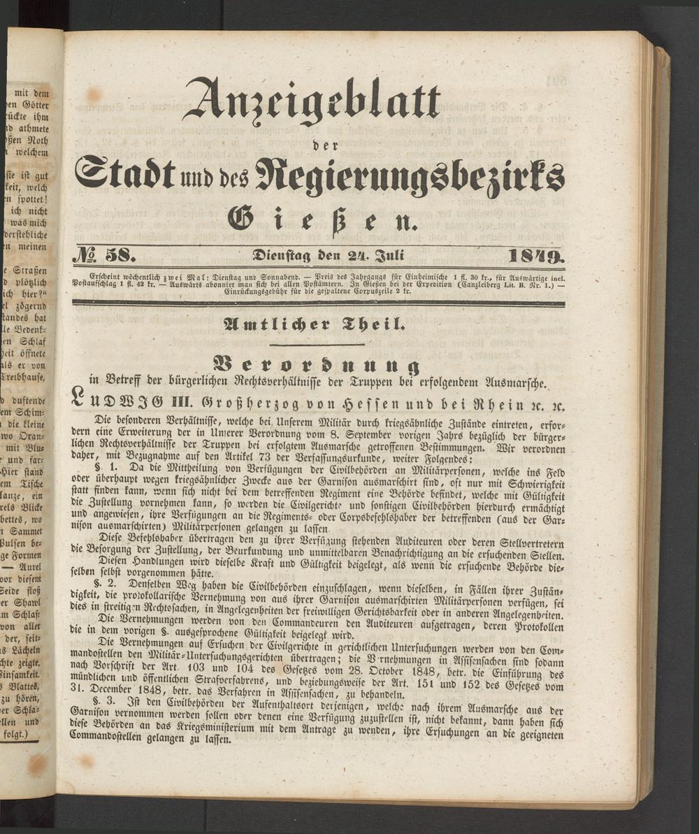 Anzeigeblatt für die Provinzialhauptstadt Gießen. 1840-1867