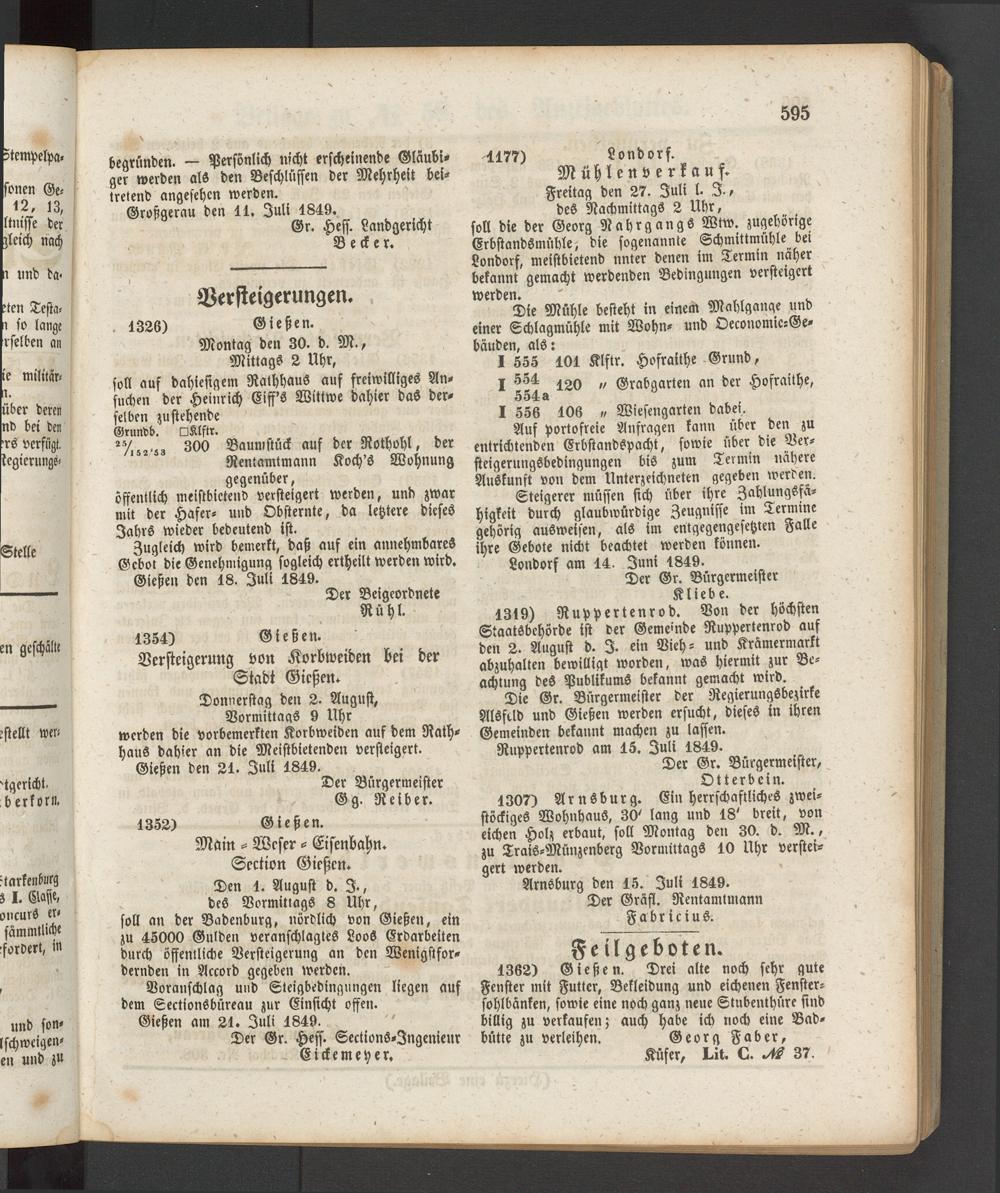 Anzeigeblatt für die Provinzialhauptstadt Gießen. 1840-1867
