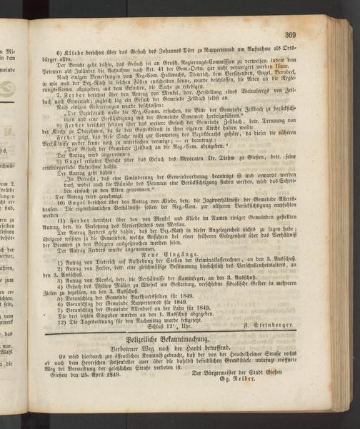 Anzeigeblatt für die Provinzialhauptstadt Gießen. 1840-1867