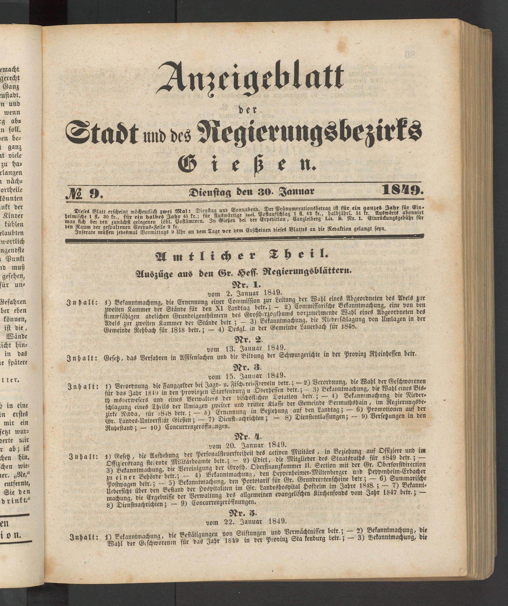 Anzeigeblatt für die Provinzialhauptstadt Gießen. 1840-1867