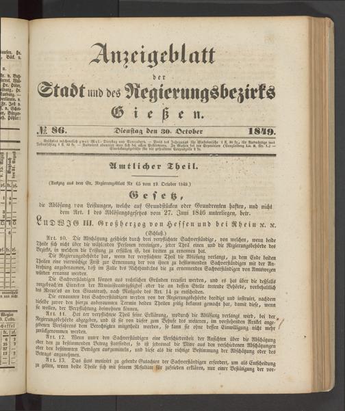 Anzeigeblatt für die Provinzialhauptstadt Gießen. 1840-1867
