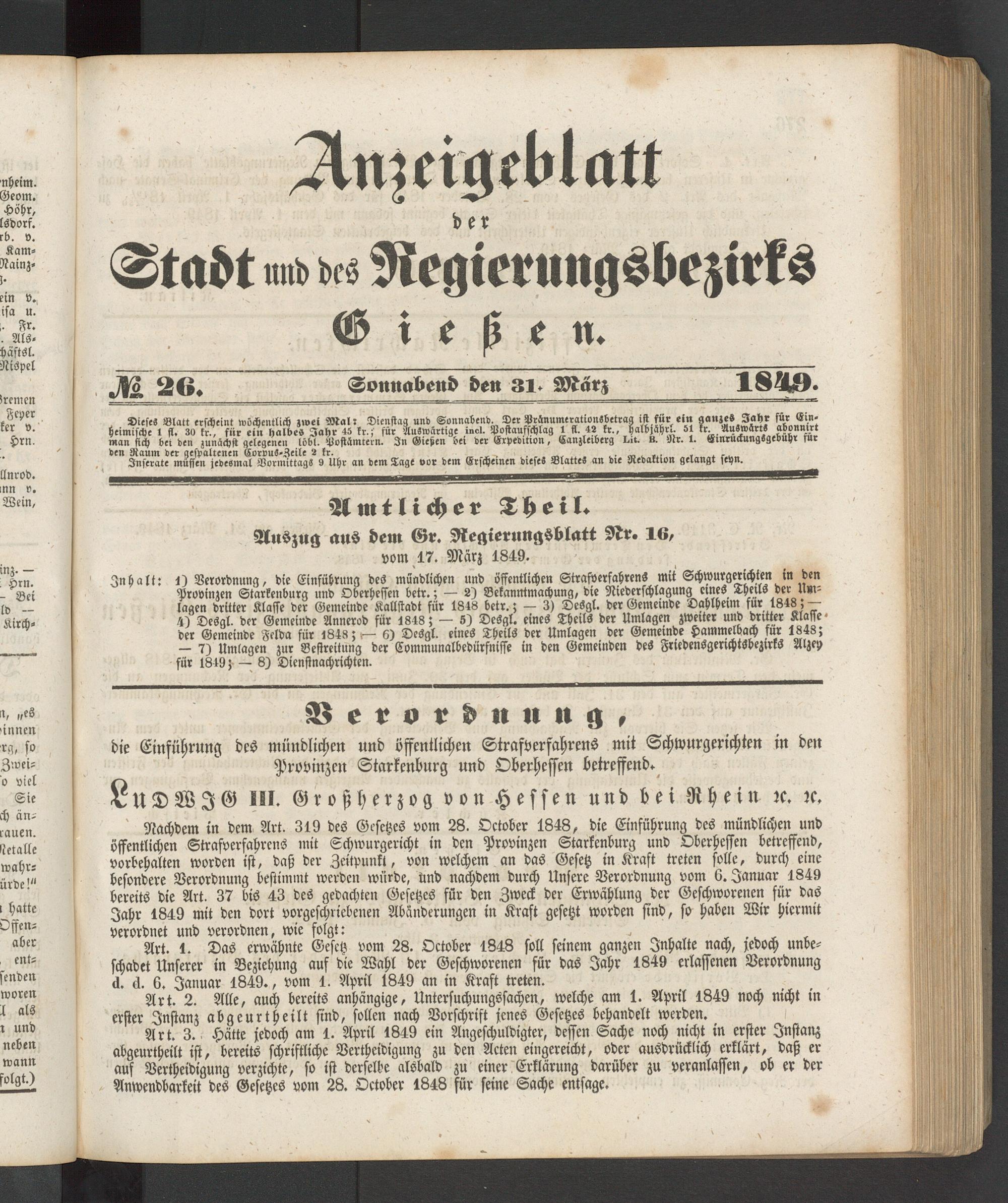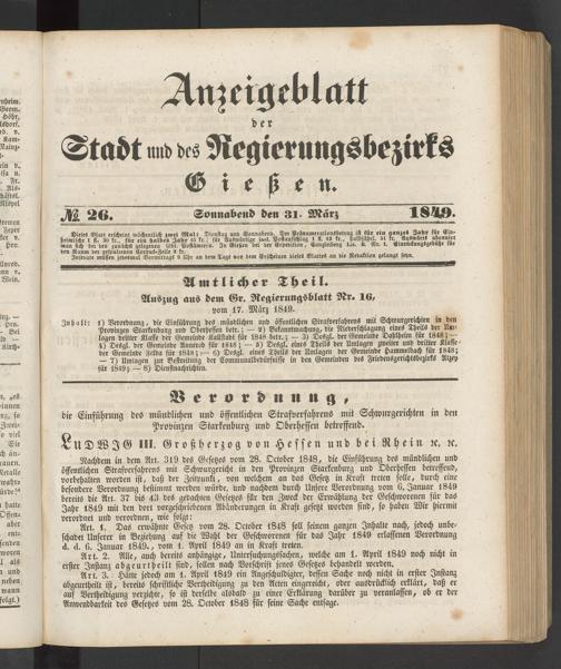 Anzeigeblatt für die Provinzialhauptstadt Gießen. 1840-1867