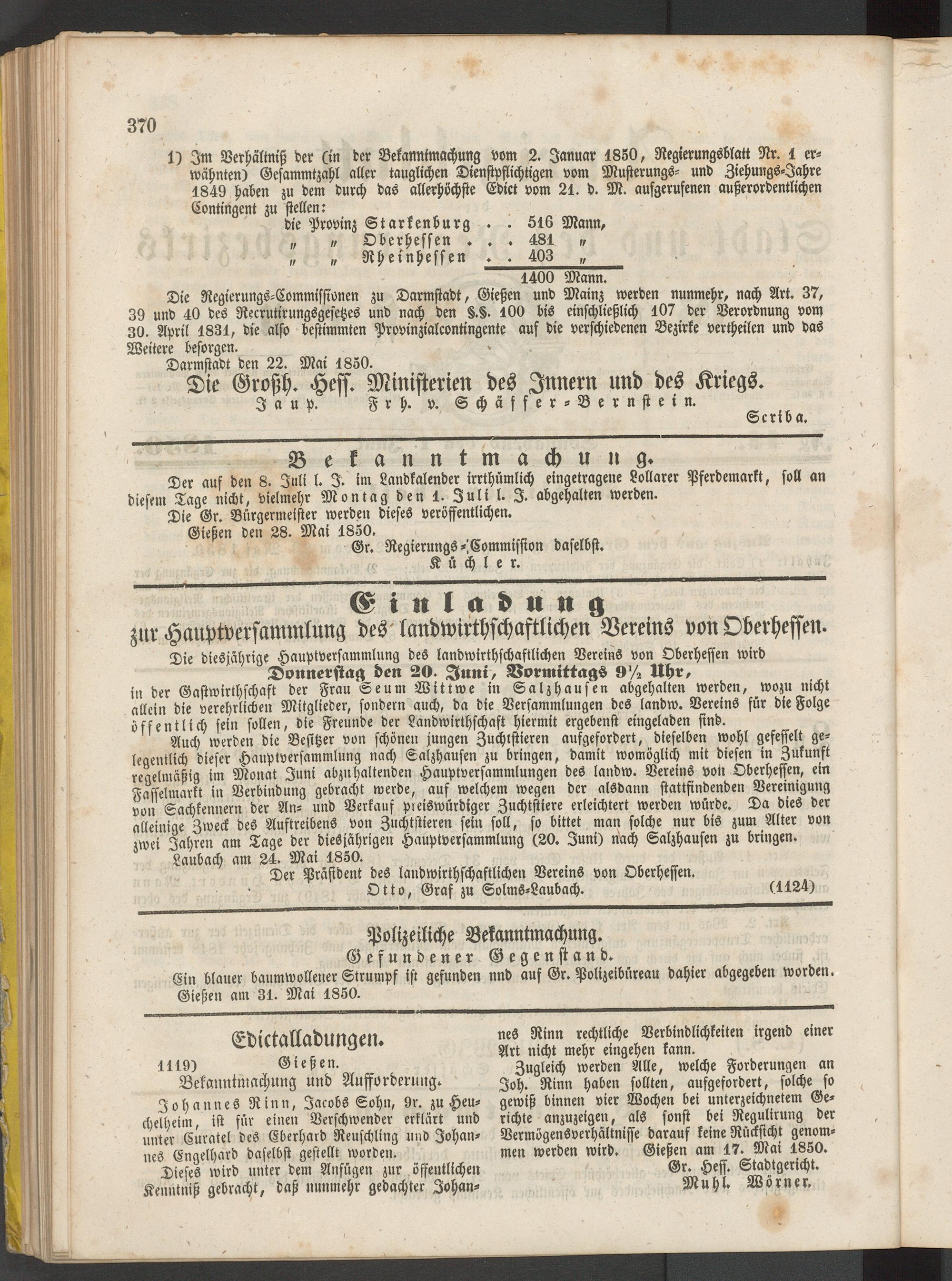 Anzeigeblatt für die Provinzialhauptstadt Gießen. 1840-1867