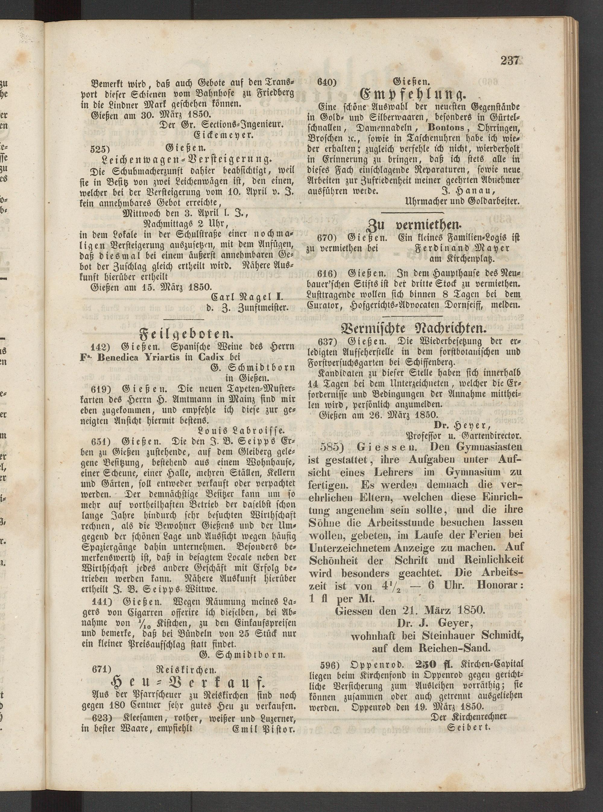 Anzeigeblatt für die Provinzialhauptstadt Gießen. 1840-1867