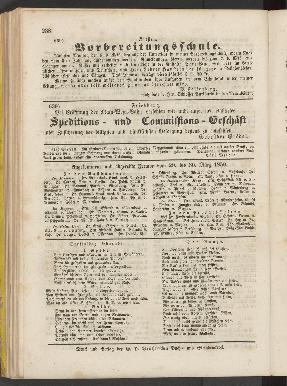 Anzeigeblatt für die Provinzialhauptstadt Gießen. 1840-1867