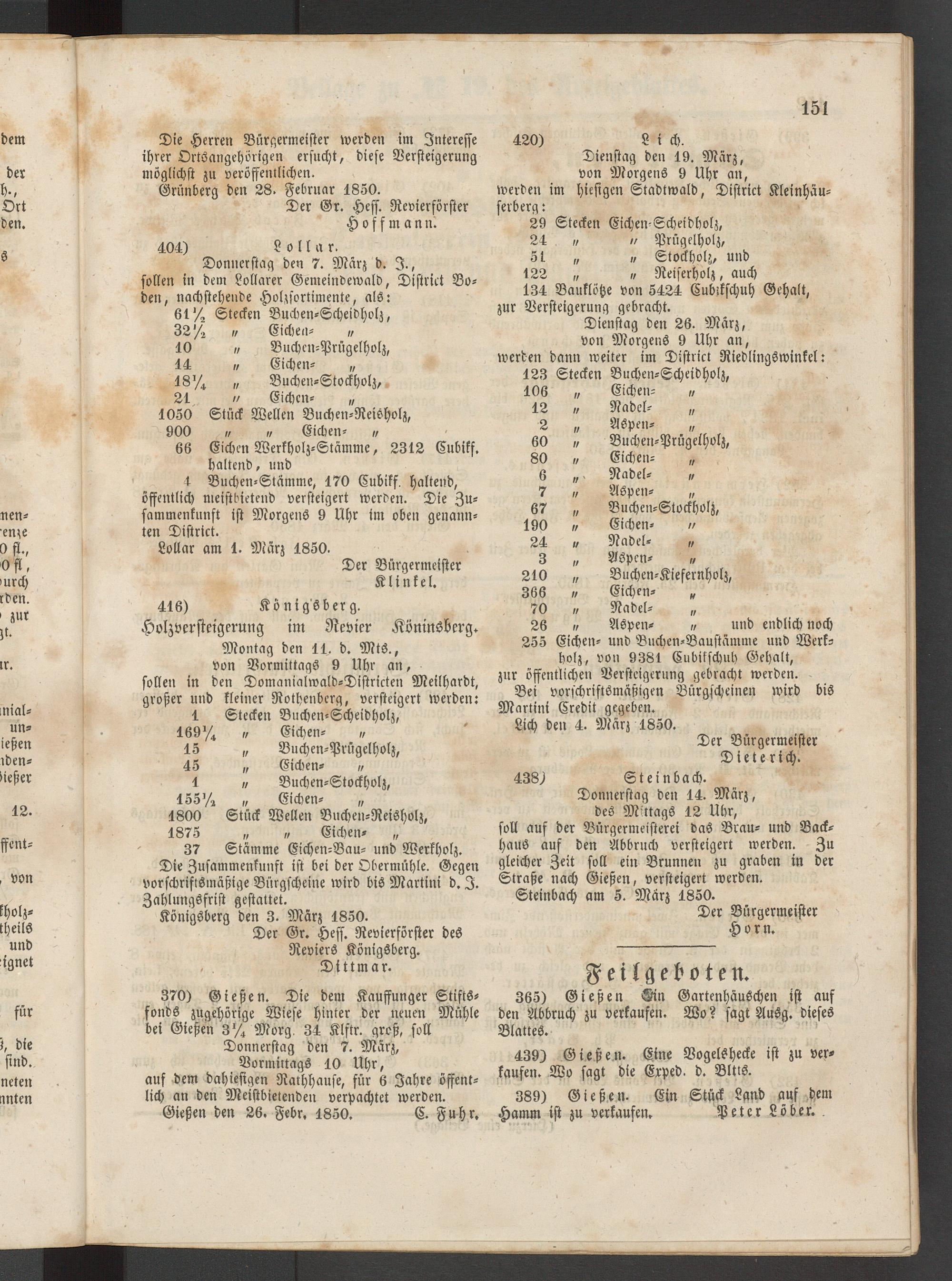 Anzeigeblatt für die Provinzialhauptstadt Gießen. 1840-1867