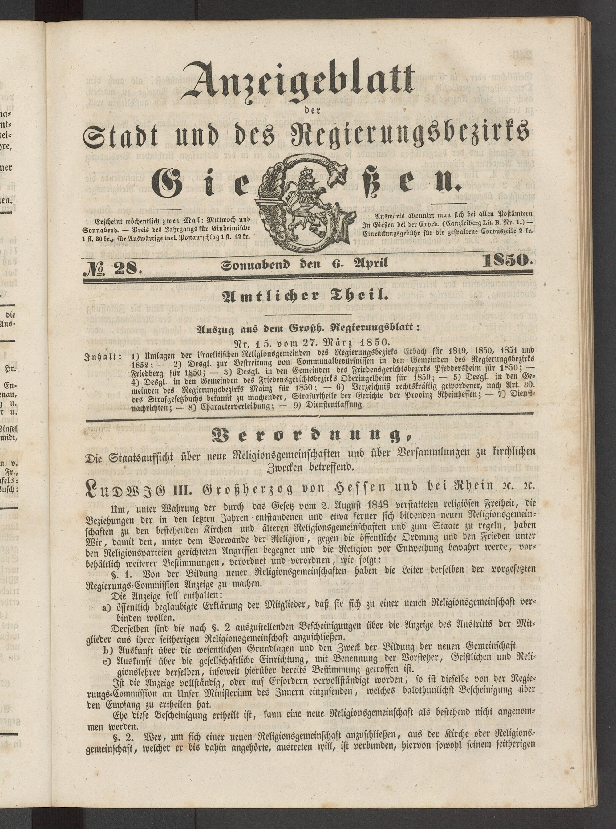 Anzeigeblatt für die Provinzialhauptstadt Gießen. 1840-1867
