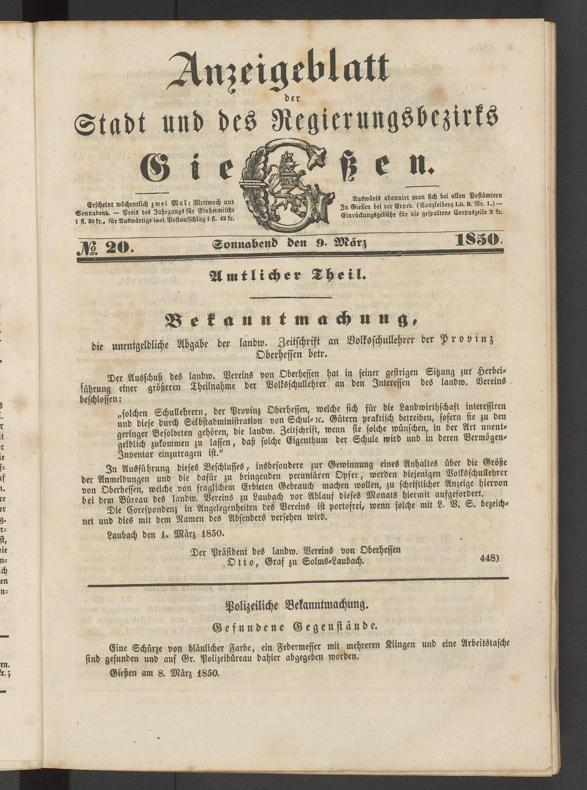Anzeigeblatt für die Provinzialhauptstadt Gießen. 1840-1867
