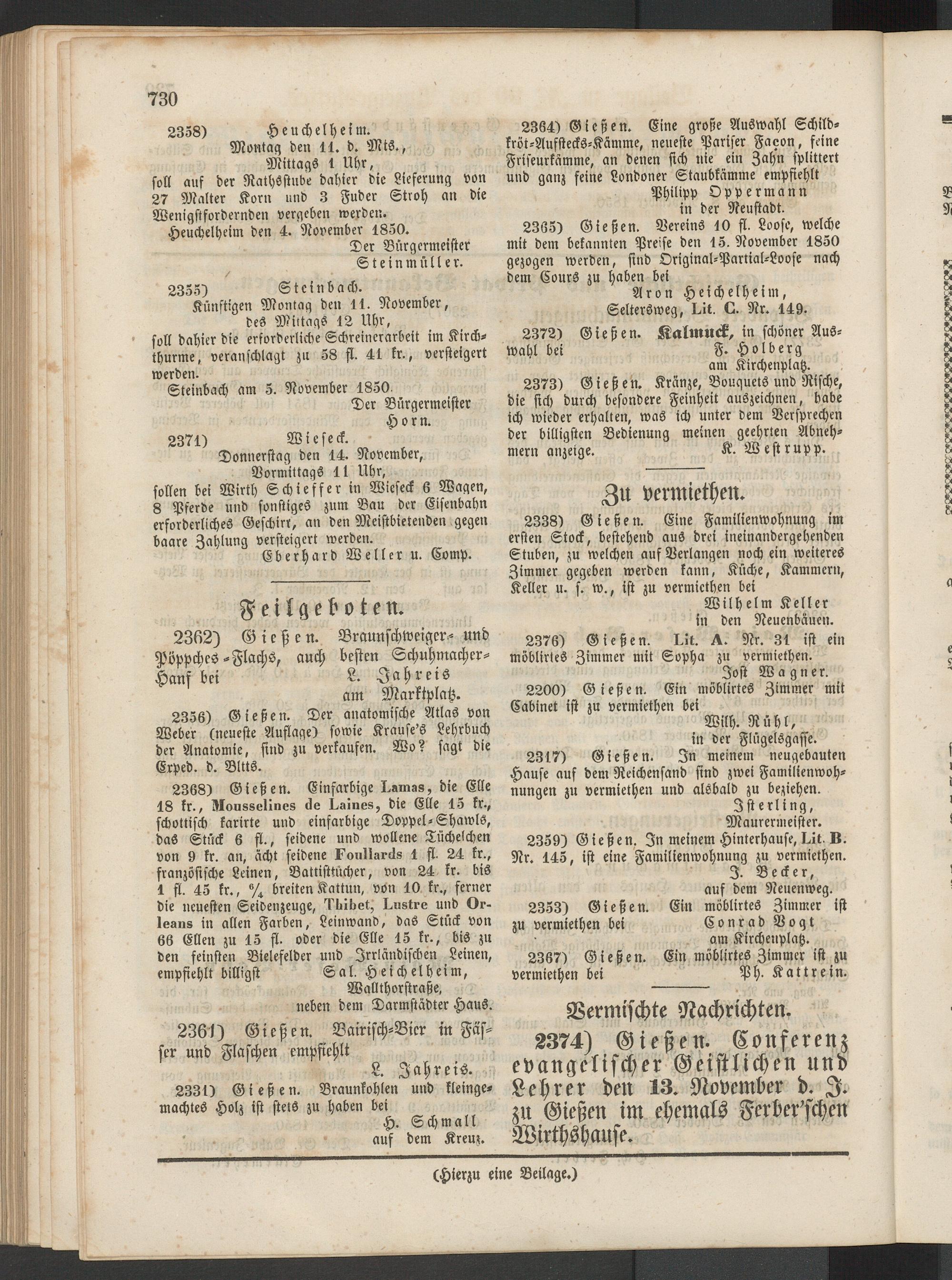 Anzeigeblatt für die Provinzialhauptstadt Gießen. 1840-1867