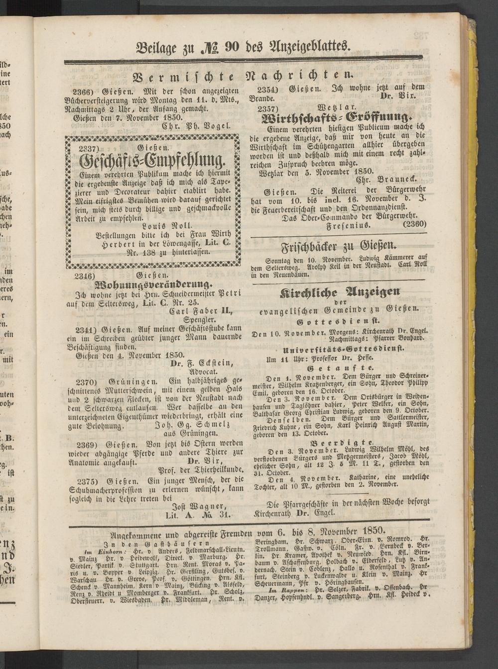 Anzeigeblatt für die Provinzialhauptstadt Gießen. 1840-1867