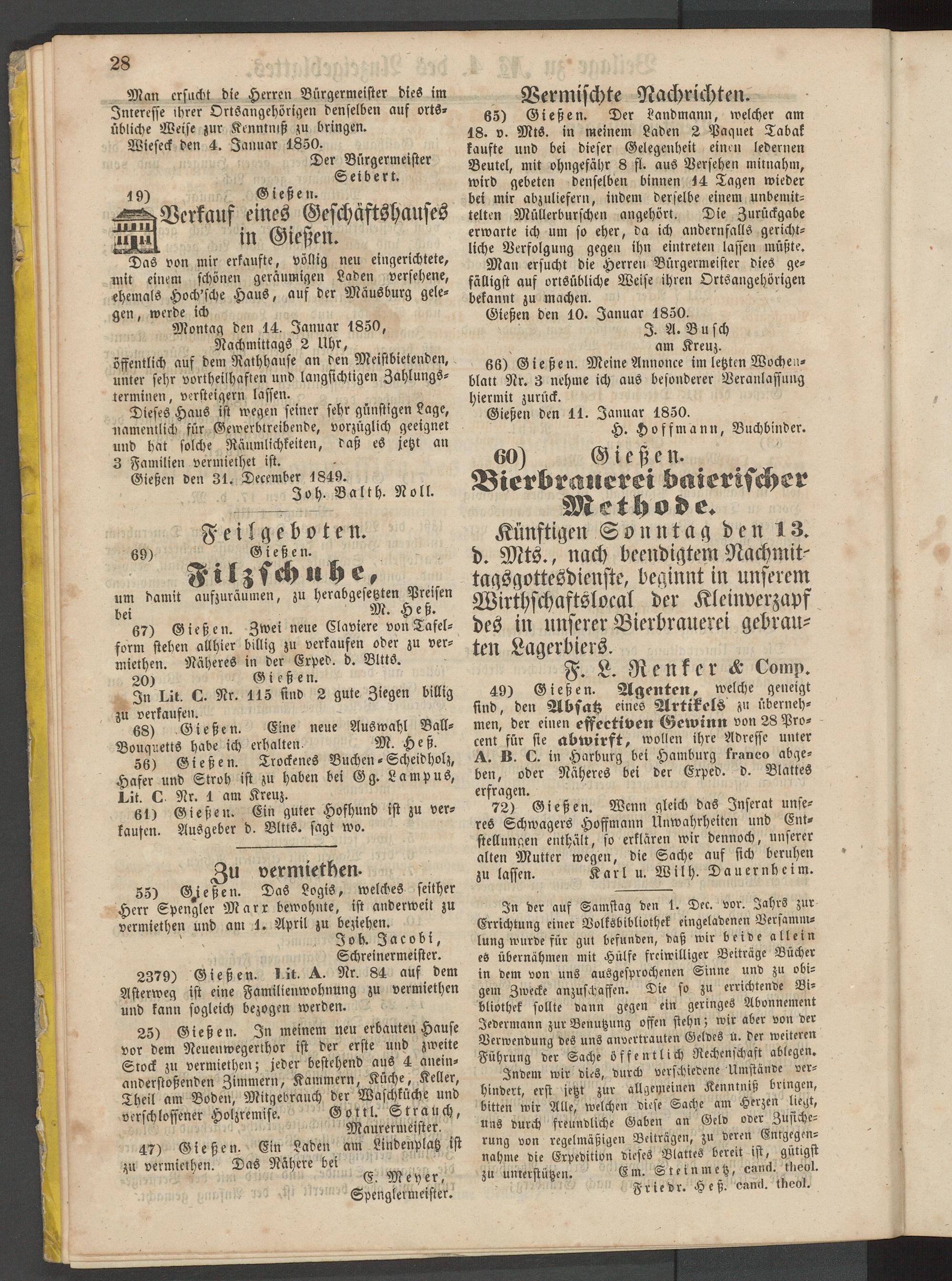 Anzeigeblatt für die Provinzialhauptstadt Gießen. 1840-1867