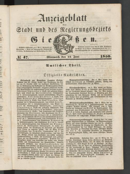 Anzeigeblatt für die Provinzialhauptstadt Gießen. 1840-1867