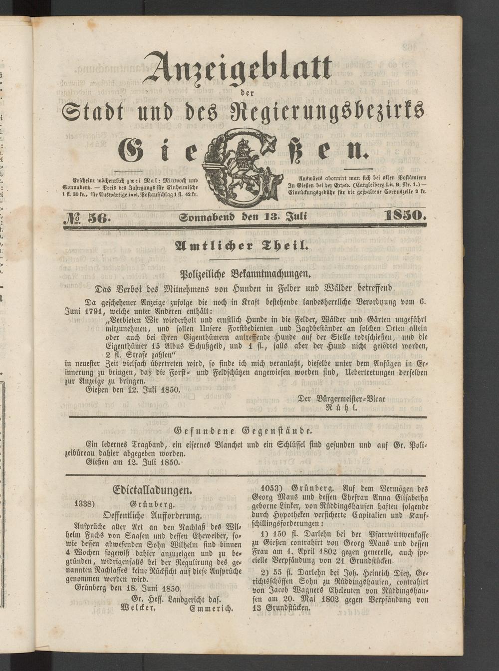 Anzeigeblatt für die Provinzialhauptstadt Gießen. 1840-1867