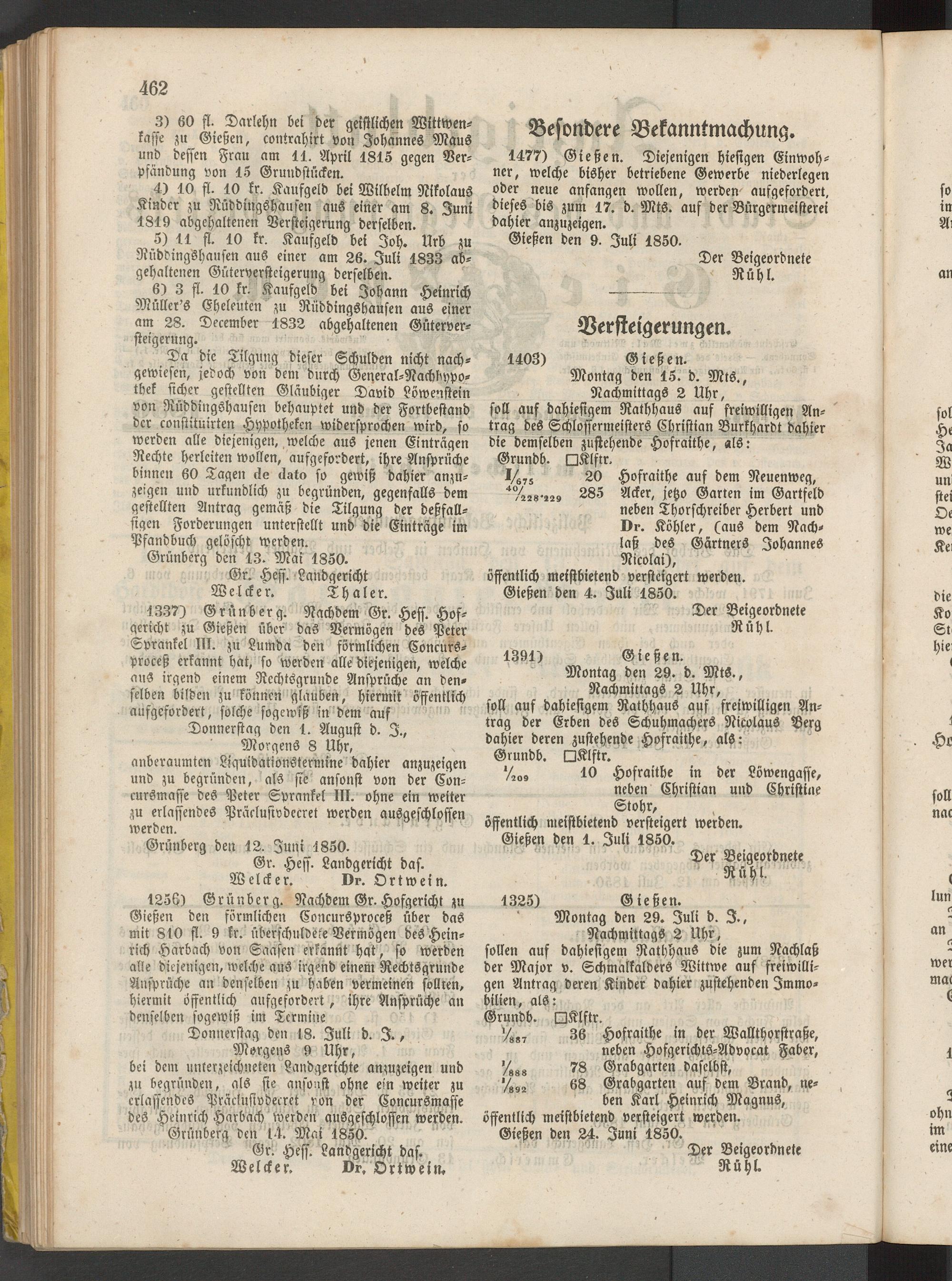 Anzeigeblatt für die Provinzialhauptstadt Gießen. 1840-1867