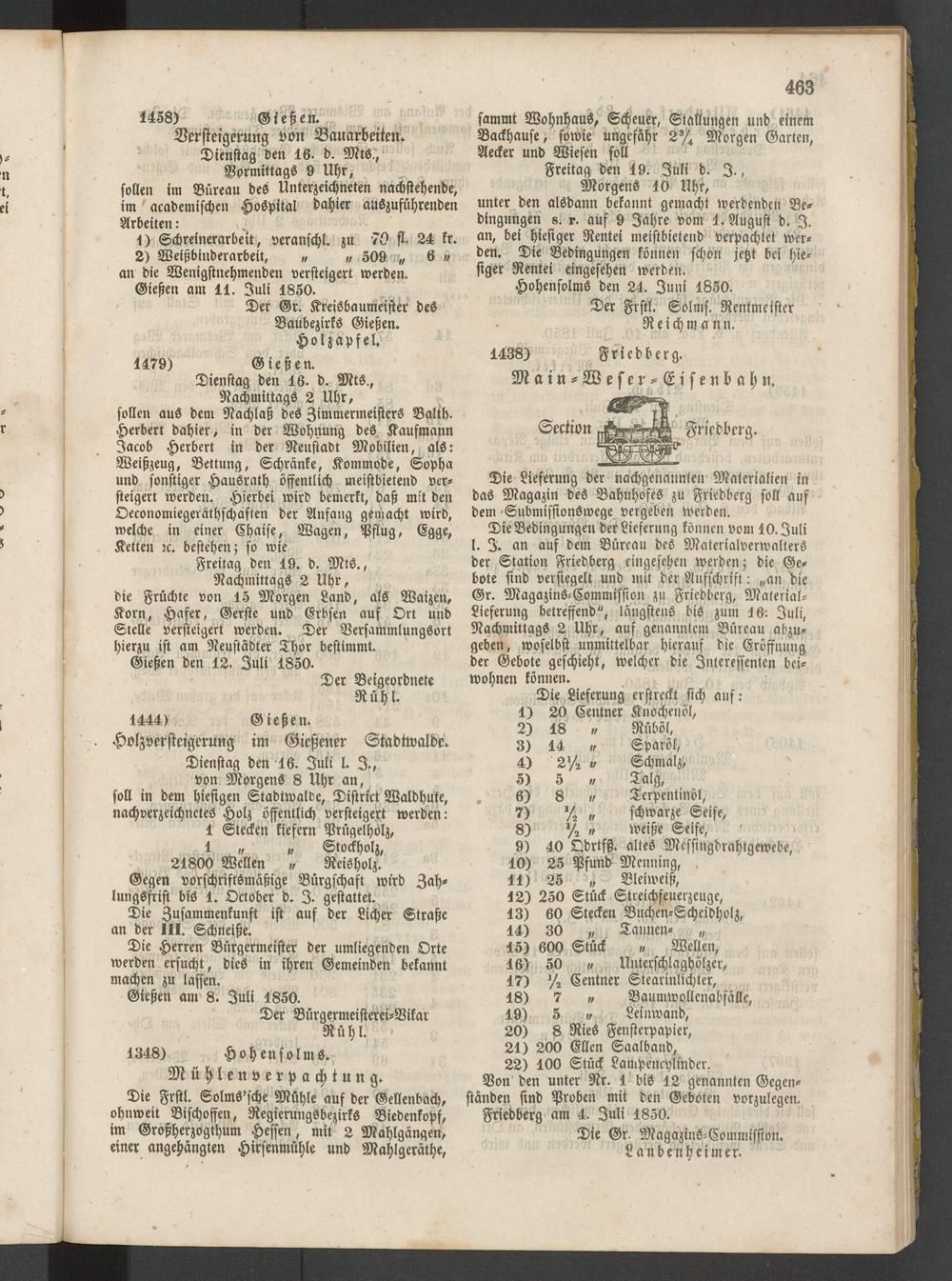 Anzeigeblatt für die Provinzialhauptstadt Gießen. 1840-1867