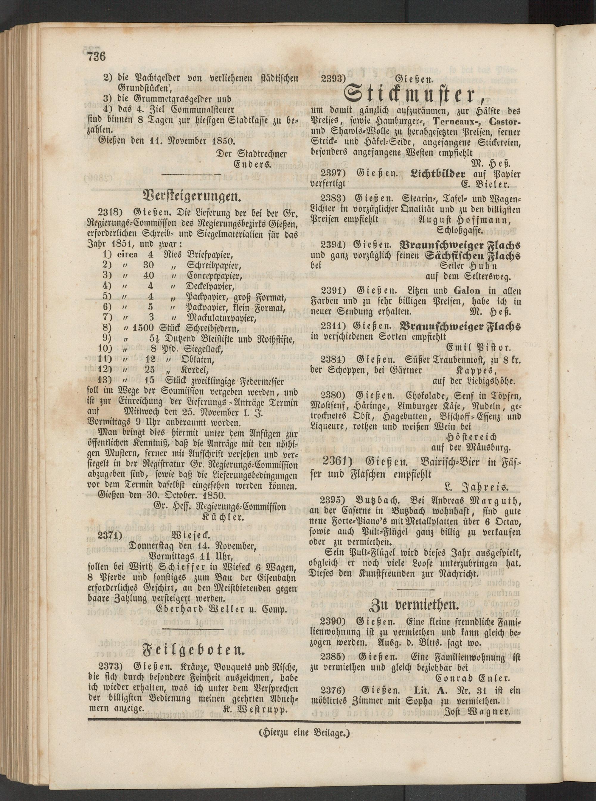 Anzeigeblatt für die Provinzialhauptstadt Gießen. 1840-1867