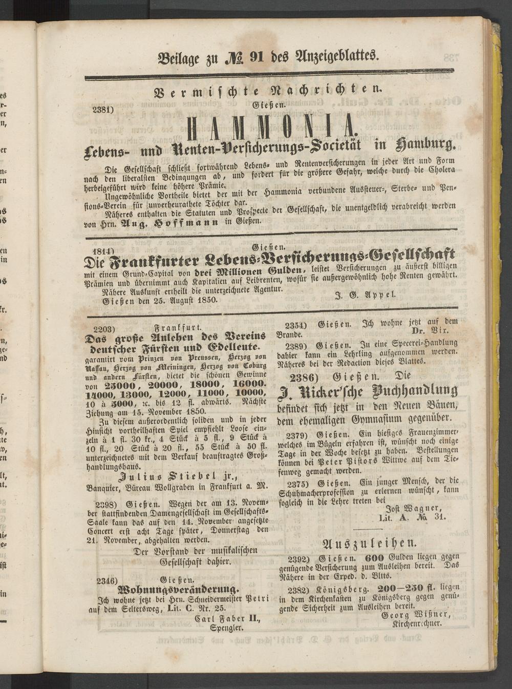 Anzeigeblatt für die Provinzialhauptstadt Gießen. 1840-1867