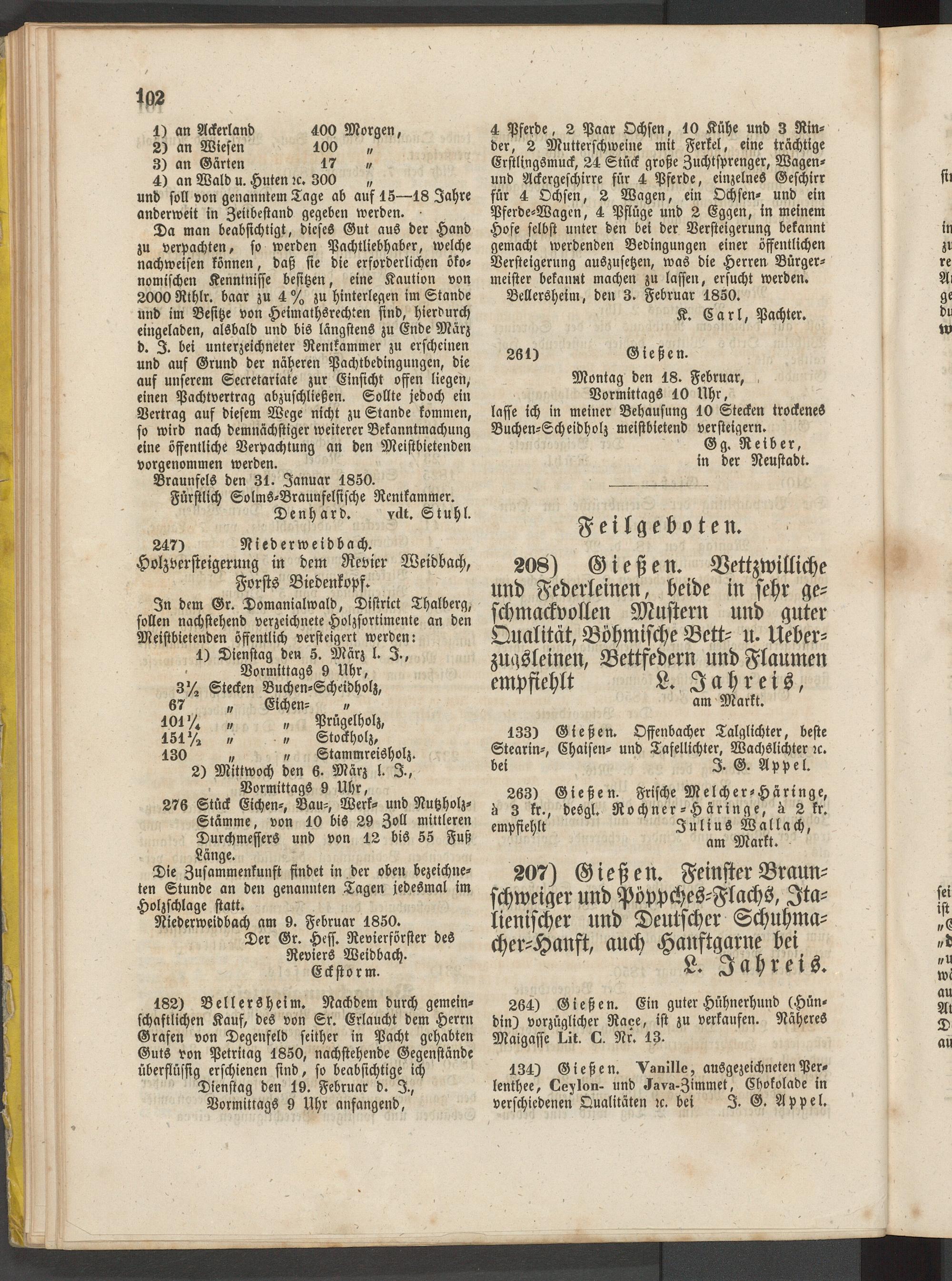 Anzeigeblatt für die Provinzialhauptstadt Gießen. 1840-1867