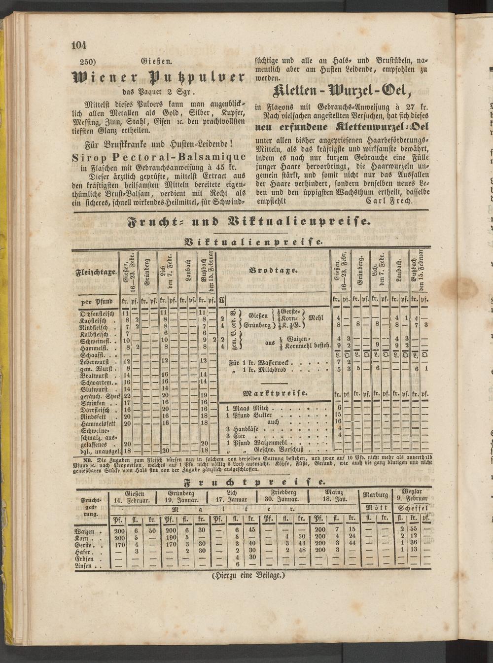 Anzeigeblatt für die Provinzialhauptstadt Gießen. 1840-1867