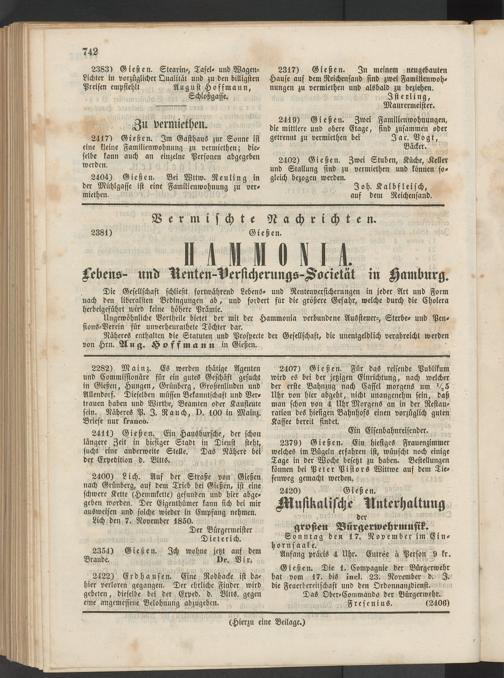 Anzeigeblatt für die Provinzialhauptstadt Gießen. 1840-1867