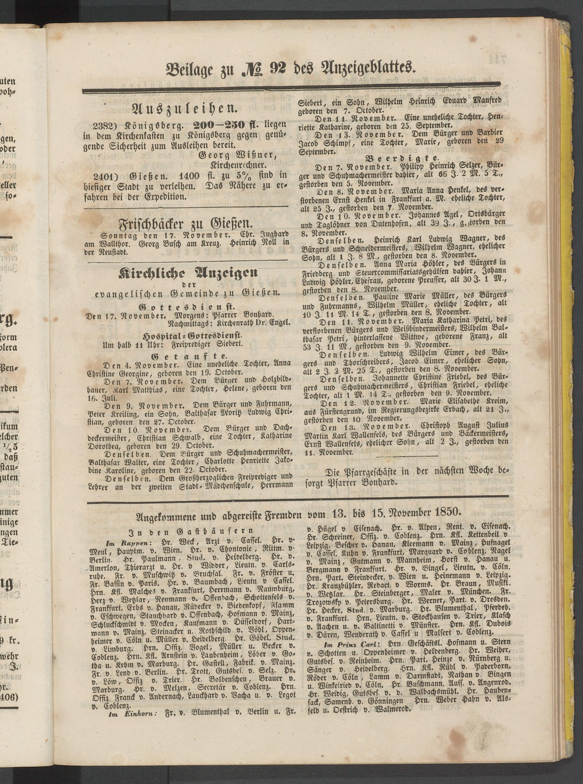 Anzeigeblatt für die Provinzialhauptstadt Gießen. 1840-1867