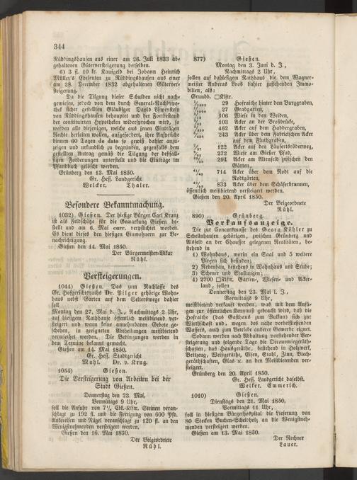 Anzeigeblatt für die Provinzialhauptstadt Gießen. 1840-1867