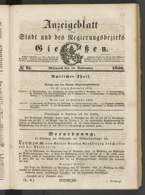Anzeigeblatt für die Provinzialhauptstadt Gießen. 1840-1867