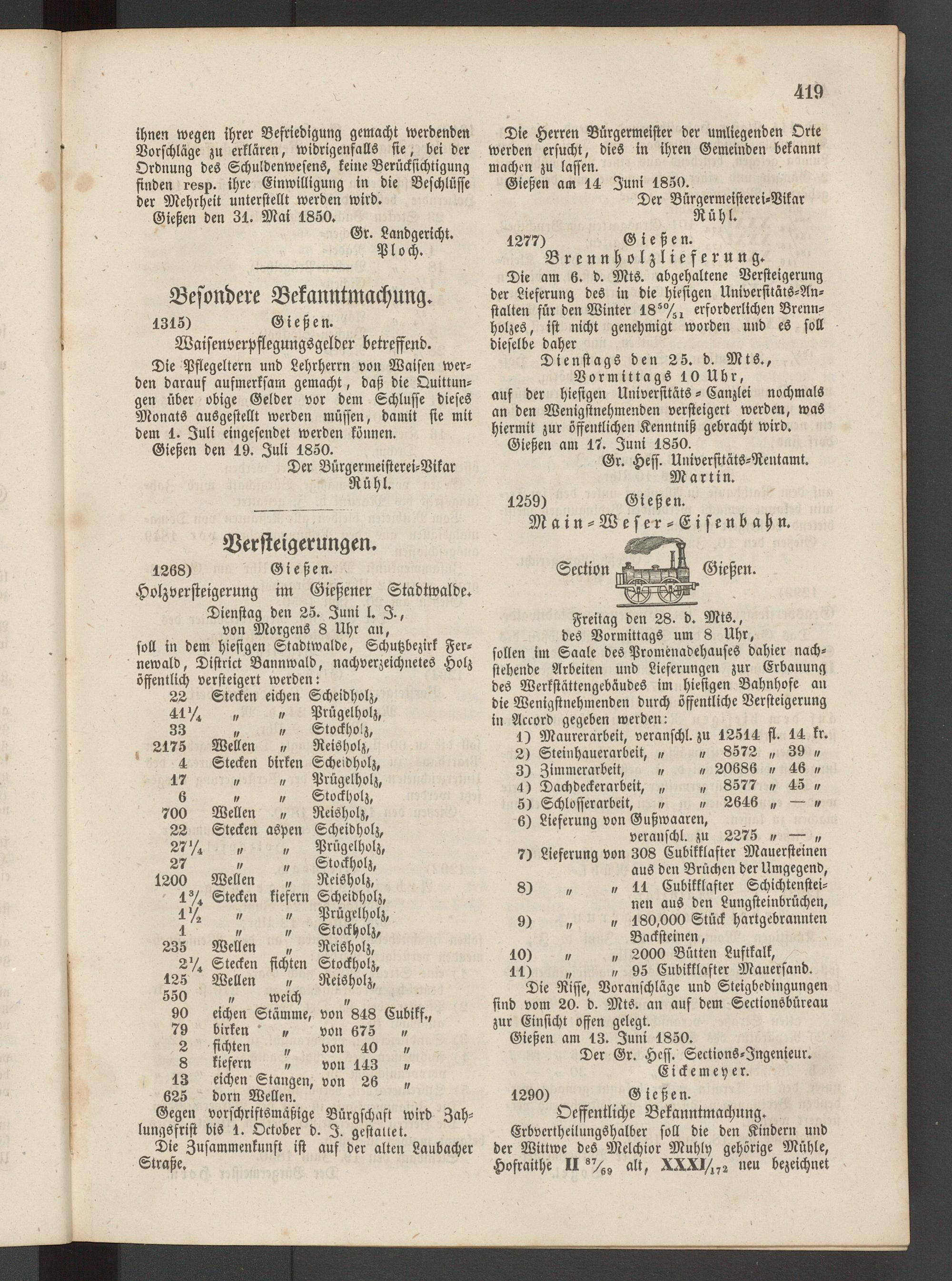 Anzeigeblatt für die Provinzialhauptstadt Gießen. 1840-1867
